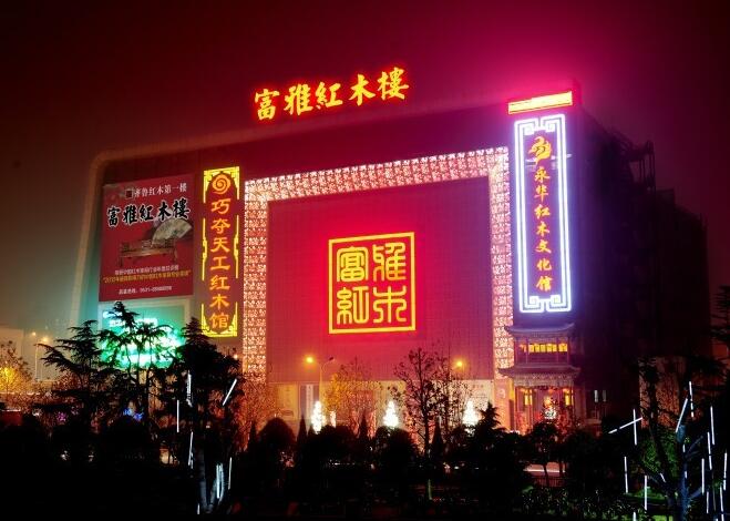 濟南市世界貿易大廈家具城富雅家具經銷處,位于濟南市天橋區生產路北口的富雅紅木樓,2011年6月營業,是省內首家萬余平米獨立高端專業紅木家具賣場。營業之后一年一個臺階,經營規模擴大了三倍。2011年6月開業伊始,富雅紅木樓只開了四層,營業面積不足一萬平方米。之后每年一個臺階,如今富雅紅木樓一至八層全部營業,營業面積已經超過三萬平方米。雖經多次調整改造,但仍然滿足不了高端品牌入駐的需求。現在還有十多個不同地域風格的知名牌受場地限制遲遲不能入駐。在這三年中,商場持續不斷的大手筆投資,營造紅木樓濃郁的傳統文化氛圍。同時,還升級了用電負荷、更新了空調系統,完成了消防改造和驗收,為業戶和顧客創造了更加方便、舒適的環境。目前,富雅紅木樓營業面積超過三千平方米的品牌專賣店有2家;一千平米以上的專賣店有六家,面積最小的也有數百平方米.